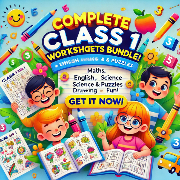 1st Grade Worksheets Bundle: 1500 Printable Worksheets of Math, English, Science, Drawing, & Coloring!